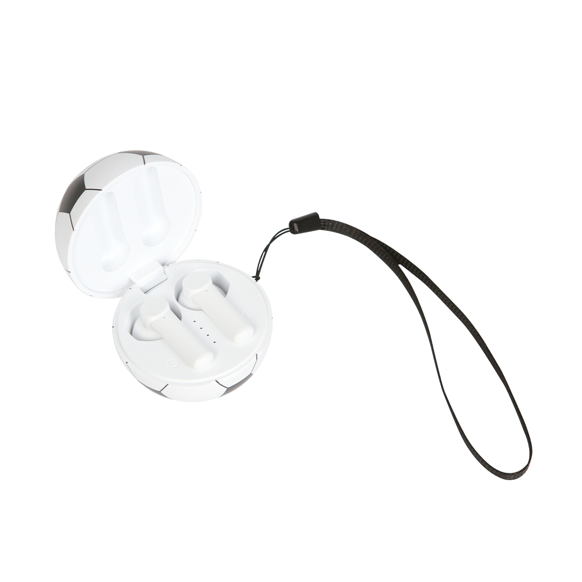 Estos audífonos inalámbricos con diseño compacto y divertido cuentan con un estuche que protege los componentes internos, e incorpora un espacio destinado para impresión, integrado de manera visible al diseño. La tapa del estuche se abre mediante un sistema abatible que permite acceder fácilmente a los audífonos.