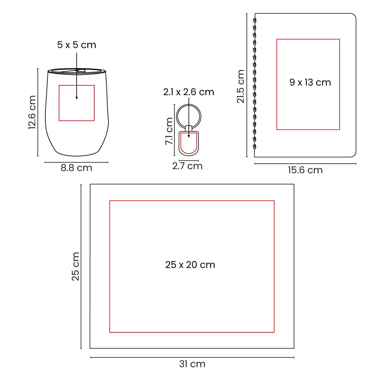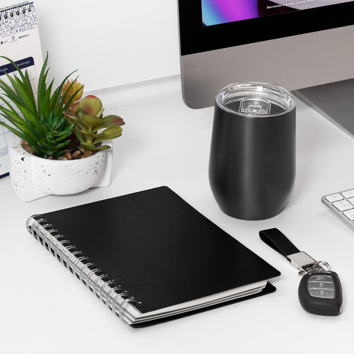 Set de regalo. Incluye libreta con 70 hojas, termo de acero inoxidable de 350 ml y llavero. La caja cuenta con cierre de solapa imantada. Brinda un regalo con estilo y utilidad. El máximo de sets disponibles para la venta está relacionado al stock de los productos que contienen.